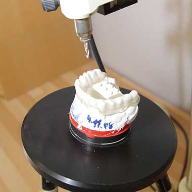 Implantate und deren Versorgung gehören heute zum Leistungsangebot eines modernen Dentallabors. AB-Dent arbeitet eng mit implantologisch tätigen Zahnärzten zusammen und verfügt über umfangreiche Erfahrungen im Bereich der Suprakonstruktionen (Kronen und Brücken auf Implantaten). Mit dem innovativen med 3D-System sind wir in der Lage, der Chirurgie ein hoch modernes Diagnostik- und Planungssystem anbieten zu können. Auf Grundlage einer Schichtröntgenaufnahme, bei der der Patient eine Bissschiene mit besonderen Markierungen trägt, werden vor der Implantation im Dentallabor mit dem Positionierer und einer speziellen Software die optimalen Positionen der Implantate auf die Bohrschablone übertragen. Der Implantologe kann dann während des Eingriffs die Bohrung sehr exakt im richtigen Winkel und in der richtigen Tiefe gewebeschonend und absolut sicher durchführen.